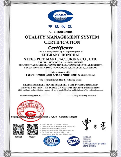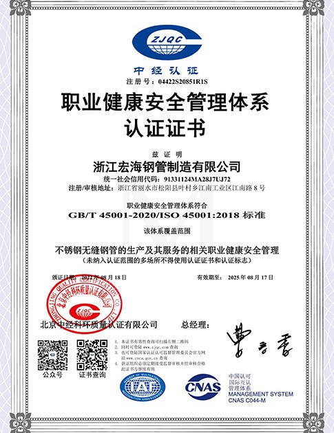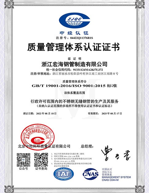 浙江宏海鋼管制造有限公司(前身為溫州市皓立不銹鋼有限公司)成立于2016年11月,公司注冊資金5180萬元,是一家集生產(chǎn)、銷售與一體的不銹鋼無縫鋼管及制品的民營企業(yè)。公司位于風景秀麗的甌江上游,有“江南桃源秘境”之稱的麗水市松陽縣江南工業(yè)區(qū);交通便利,離松陽高速出口僅4公里,離衢寧鐵路松陽站僅2公里;占地面積30余畝,總投資9000多萬元。